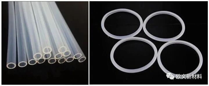 用于玻璃黏合剂、潜水镜、导尿管、光纤包覆材料和浇注封闭材料的透明橡胶,主要使用硅橡胶。未填充的液体硅橡胶的强度较低,作为眼镜片材料使用时,可用铂化合物作催化剂,使其发生加成反应而制得拉伸强度较高的硅橡胶。